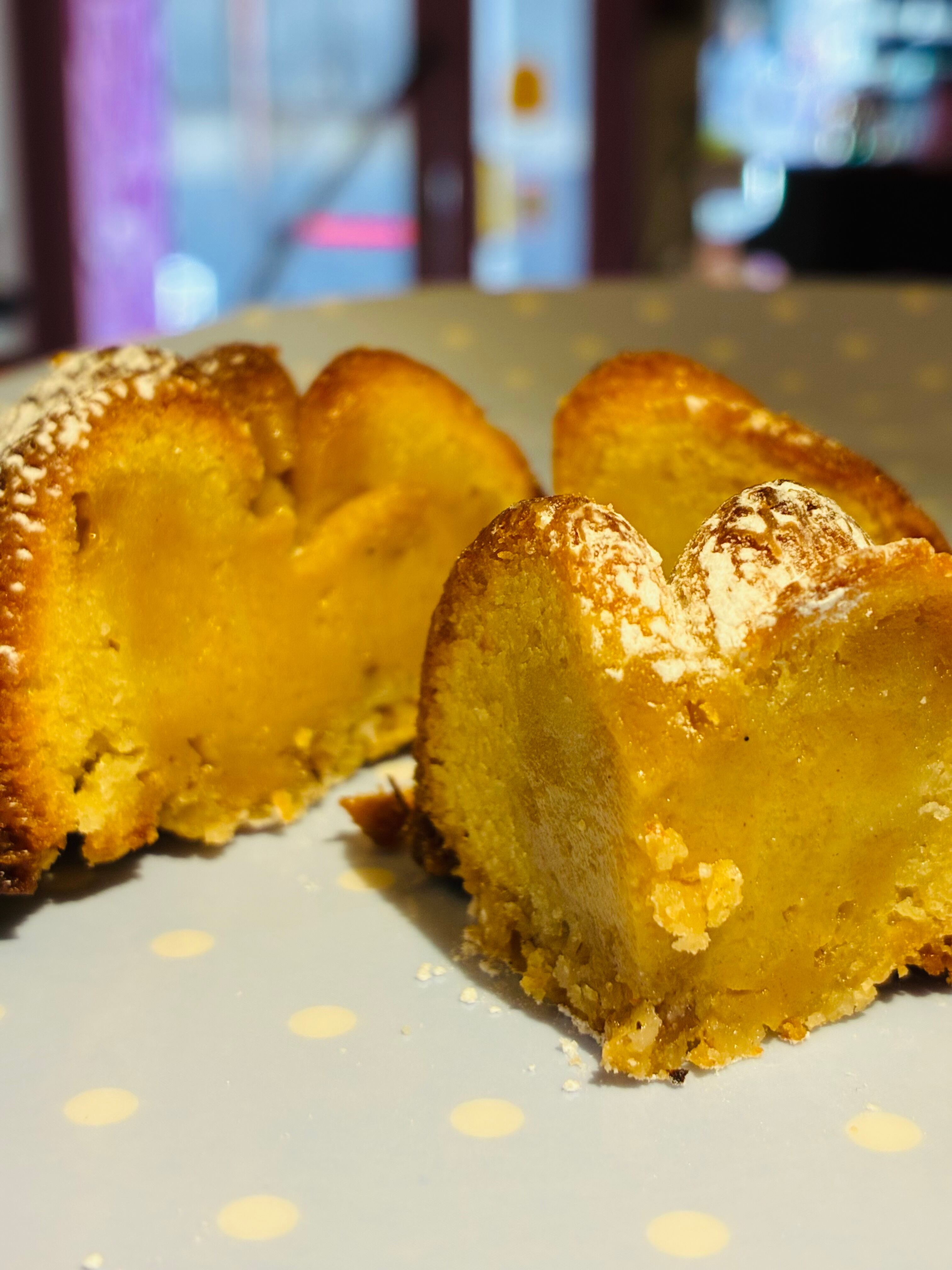 アーモンドヘーゼルナッツプラリネカスタードをたっぷり焼き込んだ贅沢なバターケーキです。