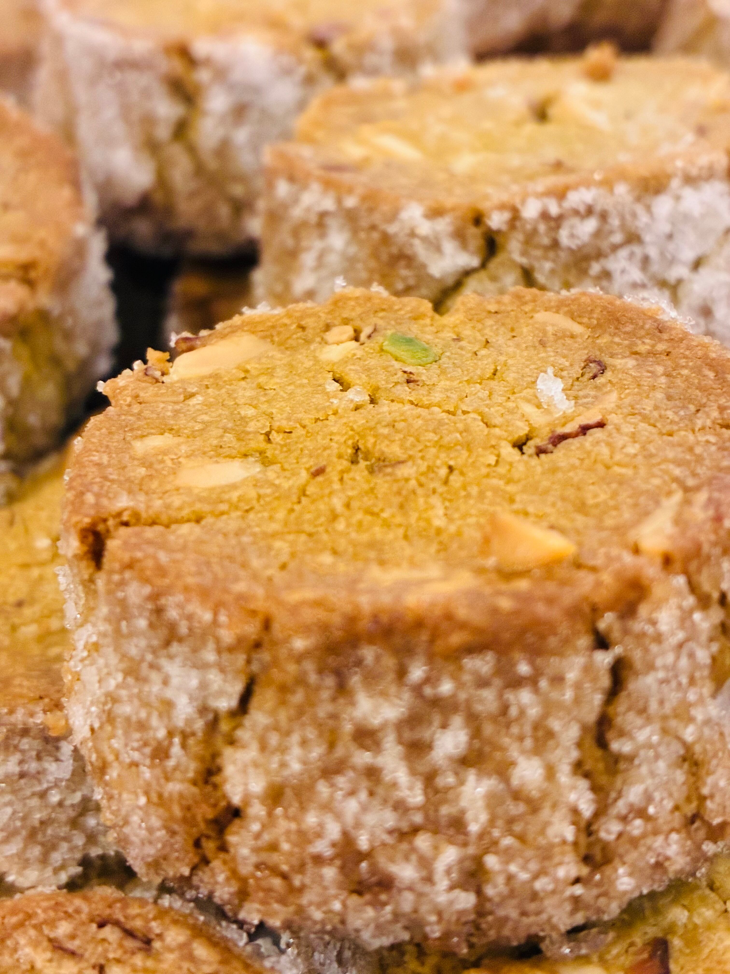 ベルギーバター、シチリアブロンテ村の最高級ピスタチオ、オーガニックアーモンド使用。